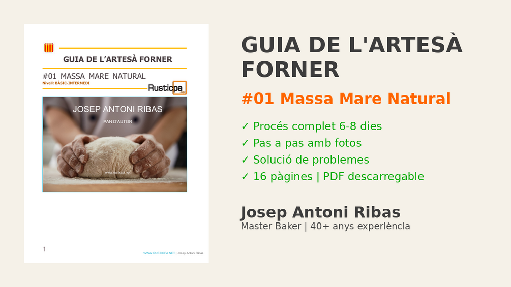 Aquesta guia professional et porta pas a pas pel procés complet de crear una massa mare de cultiu natural des de zero. Amb més de 40 anys d'experiència, Josep Antoni Ribas comparteix les tècniques i secrets que han fet dels seus pans alguns dels més reconeguts de Barcelona.